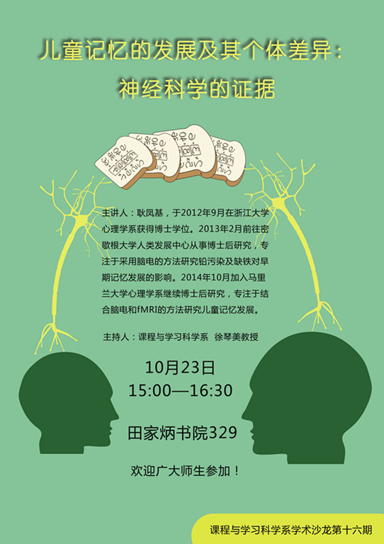 课程与学习科学系双周制师生学术沙龙第十六期:儿童记忆的发展及其个体差异:神经科学的证据