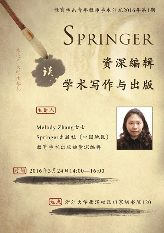 本期活动邀请到Springer出版社资深编辑Melody Zhang女士,与大家一起谈谈学术写作与出版那点事儿。