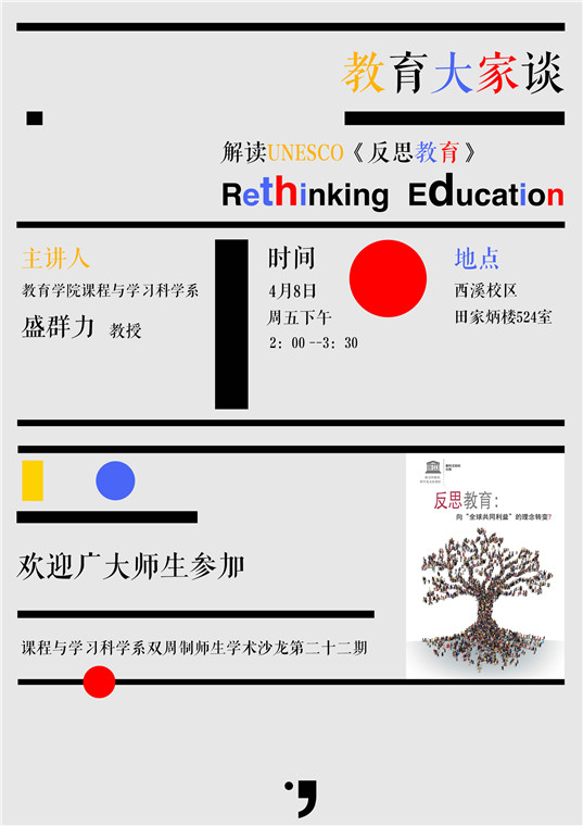课程与学习科学系双周制师生学术沙龙第二十二期:解读UNESCO《反思教育》