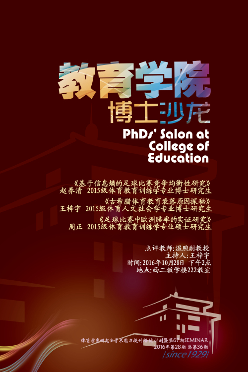 【博士沙龙】2016年第28期(体育学系研究生学术能力提升培优计划暨第67期SEMINAR)