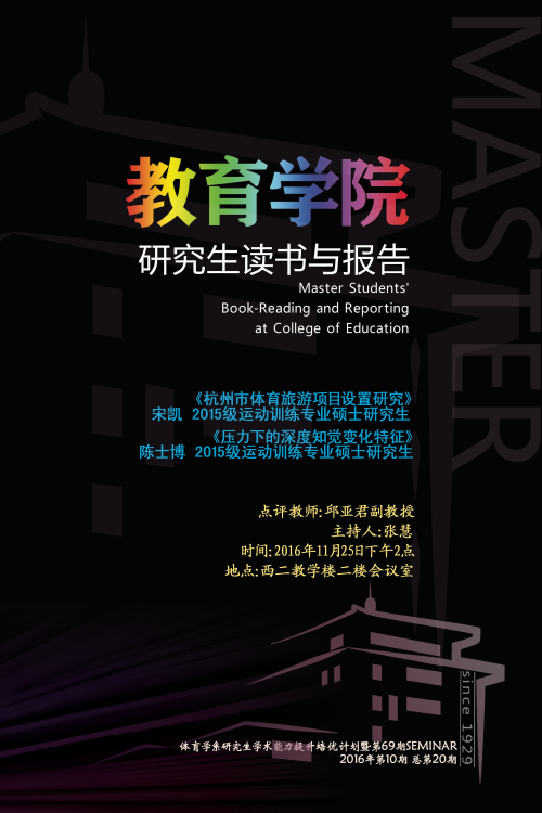 【研究生读书与报告】2016年第10期(体育学系研究生学术能力提升培优计划暨第69期SEMINAR)