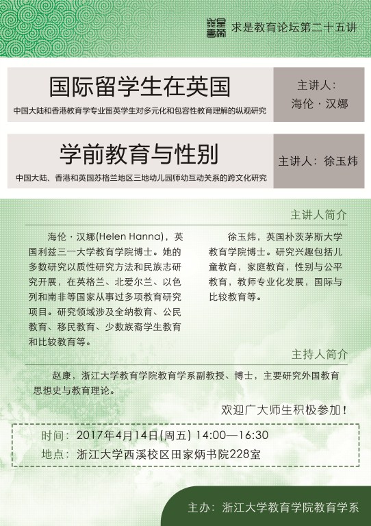 求是教育论坛第二十五讲――国际留学生在英国&学前教育与性别