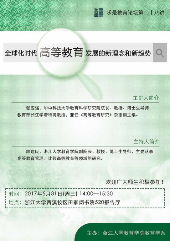 求是教育论坛第二十八讲――全球化时代高等教育发展的新理念和新趋势