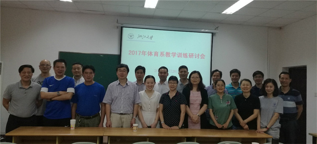 在之后召开的体育学系教学训练研讨会中,系主任王健对本学期体育学系的工作进行了总结。教学训练方面:在全系教师的认真工作下,本学期体育学系做到了教学训练零失误,同时完成了本科运动训练专业的招生工作,划定了相关的文化、专项录取分数线;科研方面:于可红老师获得了体育学系第一个国家社科基金重点项目;今年正值浙江大学120周年之际,体育学系也举办了体育学科前沿讲座及青年论坛,各界人士对体育学系都给予了很高的评价。今年体育学系新设置了由郑芳老师负责的体育产业与健康管理研究所以及张辉老师负责的体育大数据研究所2个院级研究机构,为老师们的科研工作进一步奠定了条件。总结报告之后,以理论基层教学组织和术科基层教学组织为单位,各位老师针对如何进一步提高体育学系的教学训练水平展开了热烈讨论。大家表示,教学训练是教师工作的重要内容,提高教学训练水平对于培养学生的专业能力,促进体育学系的发展具有重要意义。
