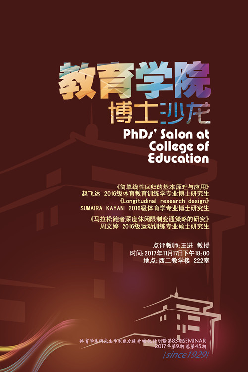【博士沙龙】2017年第9期(体育学系研究生学术能力提升培优计划暨第83期SEMINAR)