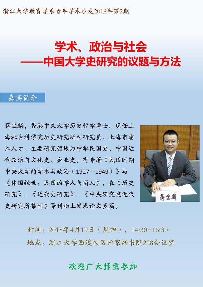 教育学系青年学术沙龙2018年第2期:学术、政治与社会――中国大学史研究的议题与方法