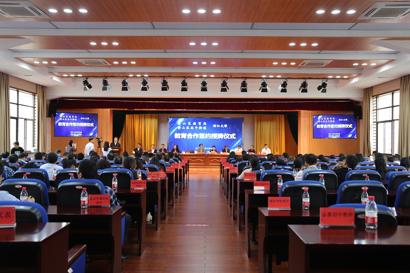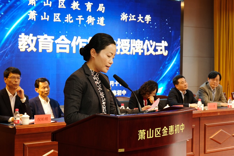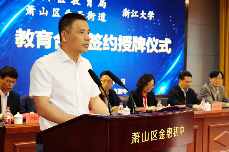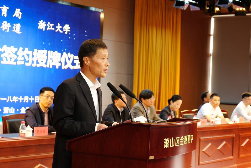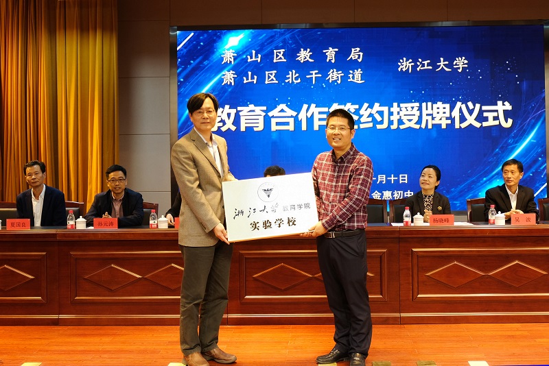 10月10日,yl8cc永利官网与萧山区教育局、萧山区北干街道在萧山金惠初中举行yl8cc永利官网实验学校(萧山金惠初中)签约、授牌仪式。yl8cc永利官网院长顾建民、党委书记吴巨慧、副院长周丽君、专家组负责人孙元涛副教授,萧山区政府、萧山区教育局、萧山区北干街道、萧山城区教育管理中心领导,以及萧山区学校校长代表、家长代表、相关部门负责人共100余人参加签约、授牌仪式。仪式由萧山城区教育管理中心书记倪柏根主持。