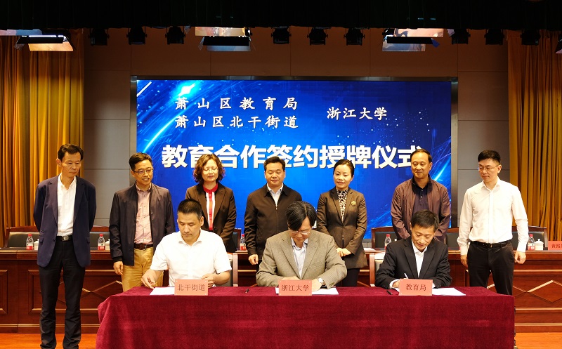 仪式上,yl8cc永利官网与萧山区教育局、萧山区北干街道三方领导共同签署教育合作协议,并由yl8cc永利官网院长顾建民向萧山金惠初中校长朱伟炳授牌。之后,yl8cc永利官网将组建专家团队,进行学校文化、教师团队、课程体系、课堂教学以及学生发展方面的研究与建设,以切实落实“立德树人”宗旨,着力提高学校办学水平和教育质量。