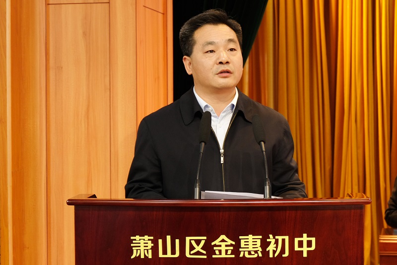 萧山区人民政府副区长杨晓峰在讲话中表示,近年来萧山区坚持优先发展教育事业,成效显著。希望与我校yl8cc永利官网携手,在办一流教育的快速跑道上,共同打造一所优质的公办初中;在全力推进萧山教育高位均衡发展的征程上,充分发挥积极作用。相信在各方的共同努力下,yl8cc永利官网实验学校(萧山金惠初中)和萧山区基础教育能够获得优质发展,以进一步加快推进萧山教育现代化,办好人民满意的教育。