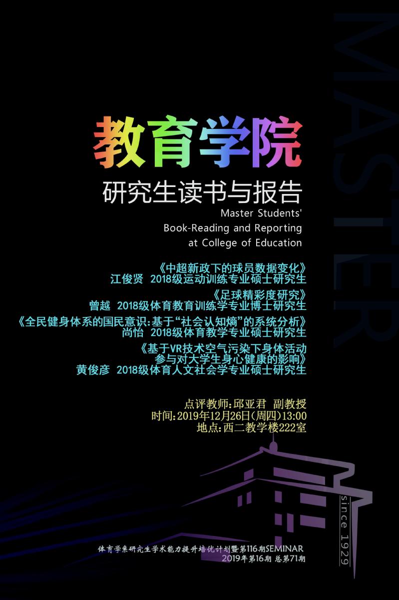【读书报告】2019年第16期(体育学系研究生学术能力提升培优计划暨第116期SEMINAR)