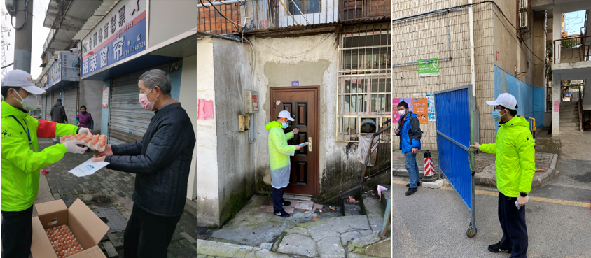 漏每一户,提供帮助;统计分发,当起了居民的菜篮子;传递力量,将物质与希望送到抗疫一线。