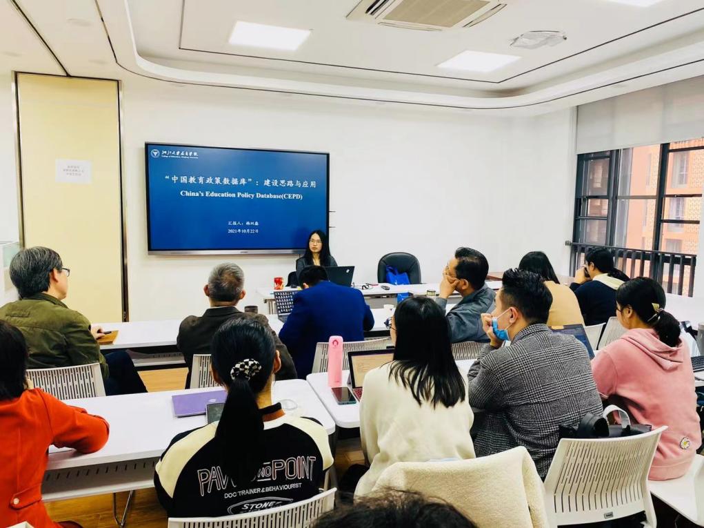 10月22日,“百人计划”研究员韩双淼以“中国教育政策数据库(China’s Education Policy Database, CEPD):建设与应用思路”为主题在yl8cc永利官网508教室作学术报告。院长顾建民、浙江大学“求是特聘”教授张应强及30余位师生参与了本次报告会。