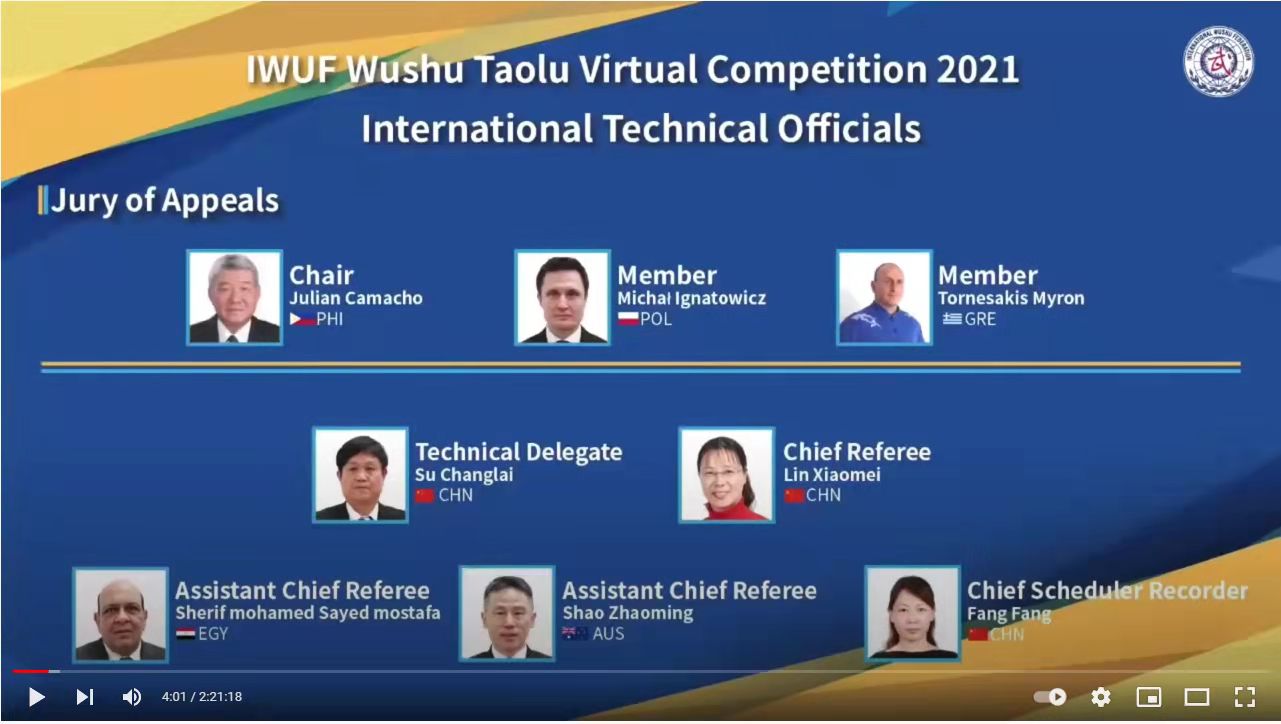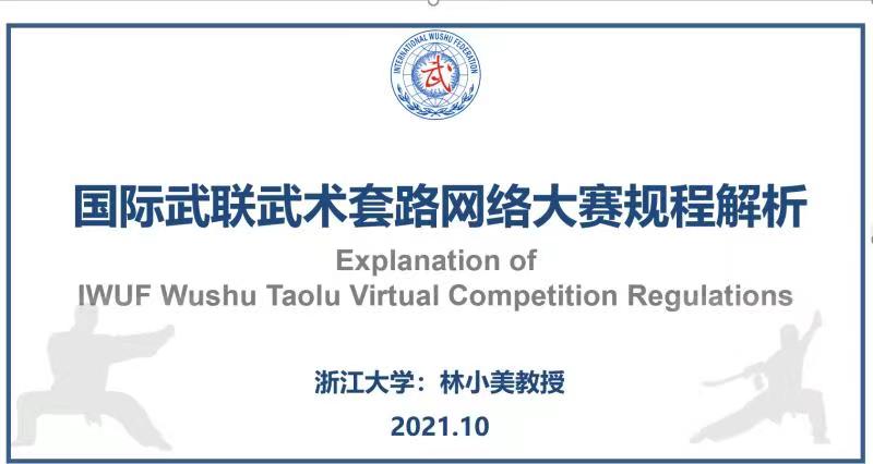 10月27日-11月3日,由国际武联主办的首届武术套路网络大赛圆满落幕,共吸引来自61个国家和地区的上千名武术套路运动员参赛。这是国际武联首次举办线上武术比赛,也是迄今国际武联主办的参赛人数最多的武术套路专项国际赛事。体育学系博士研究生导师林小美教授作为资深国际级裁判员,受国际武术联合会邀请担任此次国际武术大赛总裁判长,赛前通过网络组织世界各国裁判员学习大赛规程,主持主讲国际武术套路竞赛规则与裁判法。