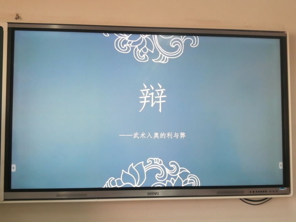 为进一步深化同学们对武术与民族传统体育核心课程《中国武术导论》内容理解,引发同学们对武术在当下整体发展趋势的思考,12月31日,武术与民族传统体育专业2001班的同学在西2教学楼514教室展开了一场激烈的辩论,此次辩论赛的题目是“武术入奥是利大于弊还是弊大于利”。郭怡老师受邀担任此次辩论赛的嘉宾和评委。
