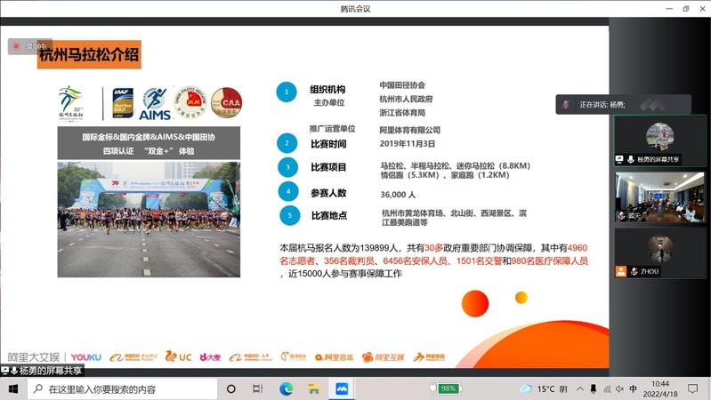 近日,阿里体育赛事专家杨勇先生受yl8cc永利官网周丽君教授邀请走进《体育管理学》课堂,为体育学系2019级体育专业本科生和部分研究生在线作了《体育赛事运营与阿里经验》报告,周丽君教授主持并全程聆听了报告。