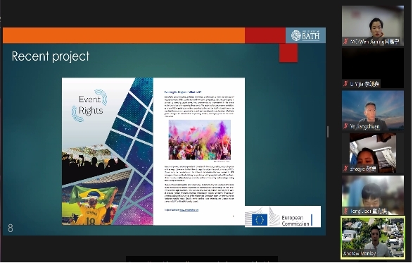 6月5日下午,巴斯大学Andrew Manley教授以Sport Mega Events and City Branding: Legacies of Exceptional Urban Development(“大型体育赛事与城市品牌”)为题主讲。Andrew Manley教授介绍了大型体育赛事对城市发展的影响,通过结合2012年伦敦奥林匹克运动会和2022年英邦运动会的案例,从经济利益、环境、文化、公众生活等方面介绍了大型活动对品牌效应塑造的影响。