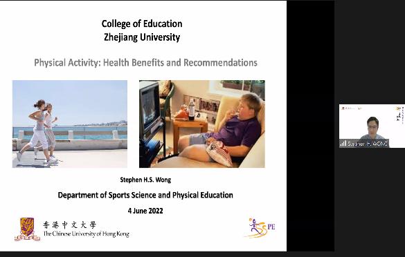 6月4日上午,香港中文大学Stephen HS Wong教授以Physical Activity: Health Benefits and Recommendations(“体育活动对健康的意义与建议”)为主题主讲,对体力活动与久坐行为的相关问题进行了解读,明确了体育活动的定义以及体育活动强度的划分。通过讲座,同学们认识到体育活动不足已经成为全球第四大死亡风险因素,意识到了久坐行为对人类社会的危害性,也学习了客观测量久坐行为的方法。