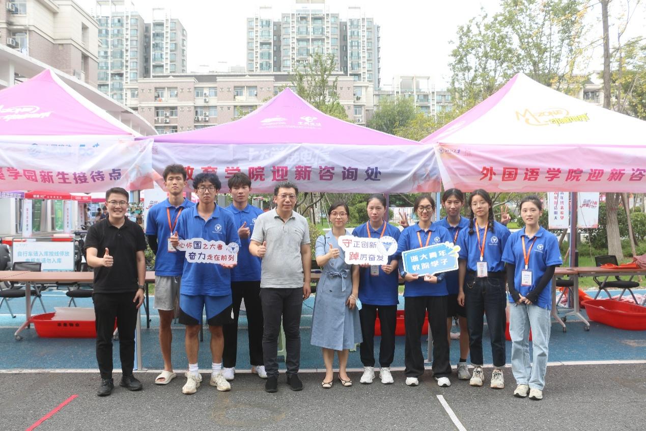 新生与学长组亲切合影,留下了珍贵的入学纪念照片。