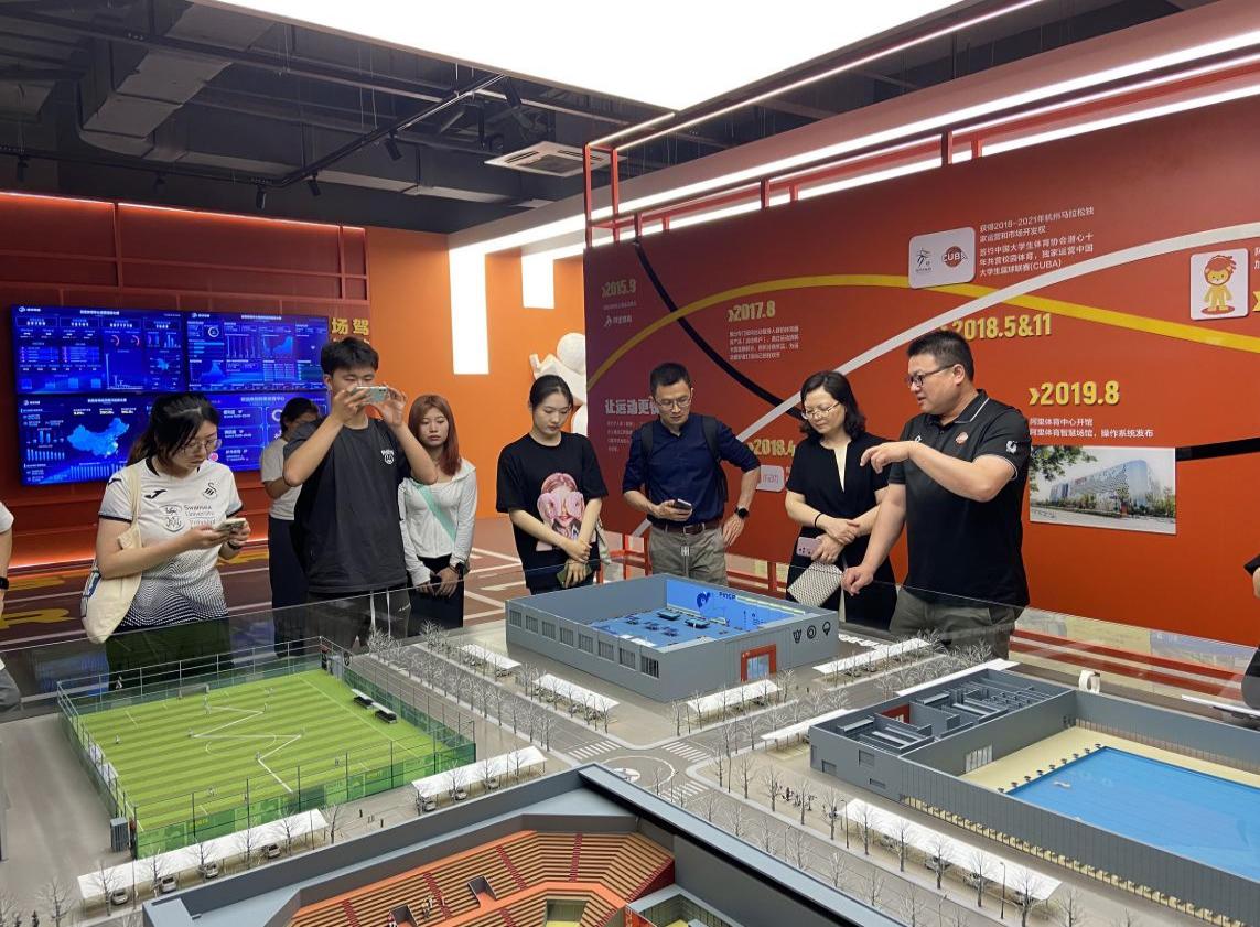 课程实践的第二个地点为黄龙体育中心。6月16日,周丽君教授与同学们来到黄龙体育中心,实地考察杭州黄龙体育中心场馆建设与改造,就体育场馆管理与赛事组织运营与中心管理人员进行交流学习。