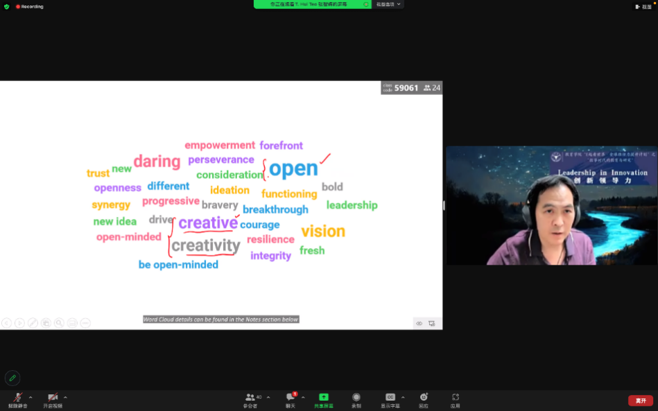 6月1日下午,来自新加坡应用技术大学、新加坡科技与设计大学的张智辉教授以“创新领导力”为题拉开了本次活动的序幕,本场讲座由yl8cc永利官网特聘研究员翟雪松老师主持。张教授分别从“什么是创新”“如何塑造团队创新力”以及“如何管理创新人才”三个方面论述有关构建创新领导力的相关内容,他生动运用新颖企业案例、结合社会现象,对主题观点展开丰富论述,通过生动的例子和具体企业案例与听众们互动,向听众展示了创新领导力的重要性,引起了听众的强烈共鸣。