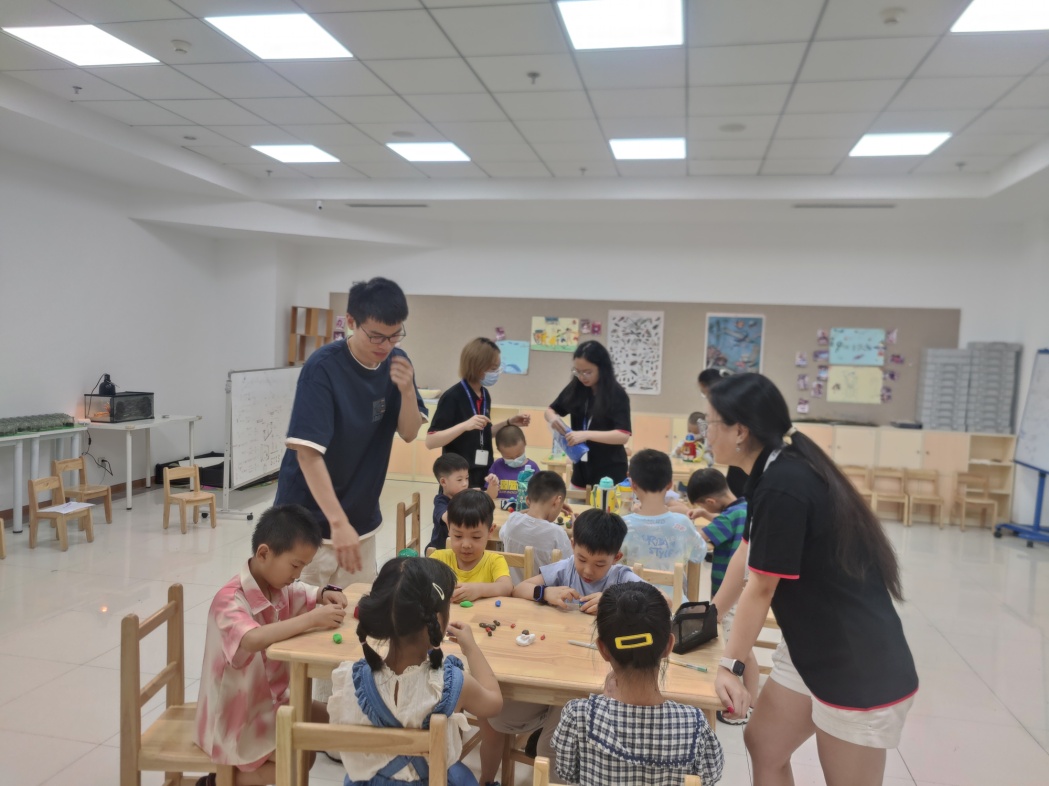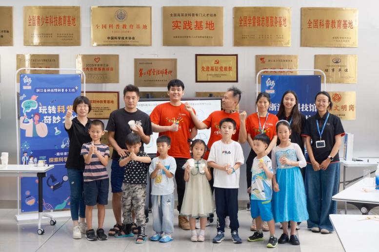 洪诗怡、刘淑涵、郭阳三位同学在的科普活动部手工坊同样有着丰富的活动。手工坊的工作主要有:科学展览、科学教育活动和场馆宣传活动。科学展览包括浙江省科技馆展项展品熟悉、了解;科学教育活动包括开展暑期手工坊、暑期小达人等公益类品牌活动,工作内容也包括设计课程、备课授课、活动拍摄、签到布场、协助主讲老师、学员管理等;场馆宣传活动包括制作活动宣传视频、活动预热、活动总结推送等。手工坊的活动能近距离接触参观的小朋友们,也能了解参观者的兴趣和喜爱的活动类型。