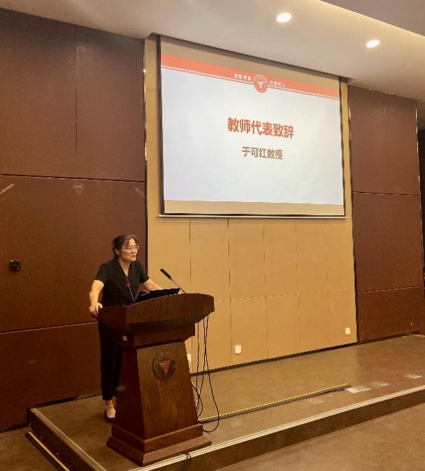 首先,副书记郭怡老师代表体育学系全体师生对新生的到来表示热烈欢迎。随后,体育学系术科基层教学组织负责人于可红教授作为教师代表发言,她指出新生一定要明确大学思想建设和专业学习的方式方法,并鼓励同学们为建设健康中国和体育强国奉献体育人的力量。