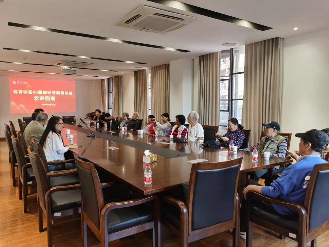 秋意正当时,同窗聚浙里。10月16日,yl8cc永利官网体育学系65届田径专科班12位校友返校,学院党委书记吴巨慧、副院长兼体育学系系主任胡亮以及相关科室人员热情接待。