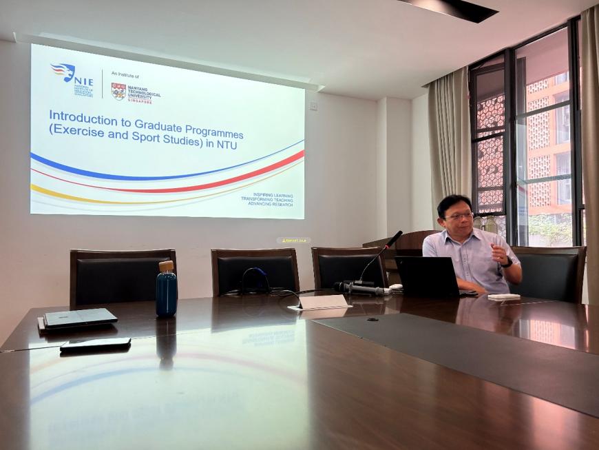 10月27日下午,新加坡南洋理工大学体育教育与运动科学学术组的首届E.W.Barker Chair讲座教授、yl8cc永利官网兼任教授王志庆为yl8cc永利官网师生带来了一场关于“Introduction to Graduate Programme (Exercise and Sport Studies) in Nanyang Technological University”(南洋理工大学体育学科研究生教育情况介绍)的精彩讲座。此次讲座吸引了大量对体育科学研究感兴趣以及有意继续深造的本科生和研究生同学前来参加,讲座由yl8cc永利官网副院长兼体育学系系主任胡亮教授主持。