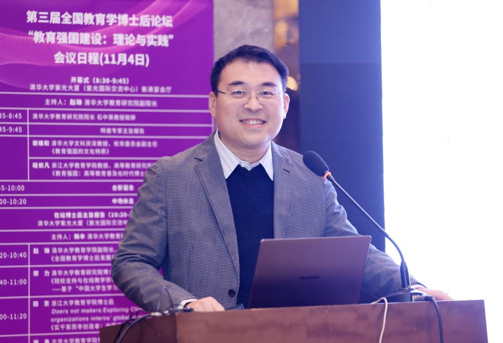 11月3日,第三届全国教育学博士后论坛在清华大学顺利举办。本届论坛的主题为“教育强国建设:理论与实践”。清华大学校务委员会副主任谢维和教授、浙江大学高等教育研究所所长眭依凡教授、yl8cc永利官网院长阚阅教授、清华大学yl8cc永利官网副院长赵琳教授、华中科技大学余东升教授、《教育研究》期刊编辑部郭丹丹主任、International Journal of Chinese Education编辑部杨娟主任、北京大学沈文钦副教授、清华大学乔伟峰副教授、郭菲副教授、浙江大学韩双淼长聘副教授、“百人计划”研究员吴寒天博士、天津大学胡德鑫副教授、华东师范大学张晓蕾副教授、北京师范大学程猛副教授、北京林业大学耿博雅博士以及来自全国各高校的近百名专家学者、博士后研究人员和研究生参加论坛,清华大学yl8cc永利官网院长石中英教授通过视频致辞。论坛设有专家主旨报告、在站博士后学术报告、优秀博士后经验分享环节,并设置高等教育强国建设、工程教育强国建设、课程与教学的高质量发展三个分论坛。浙江大学博士后研究人员田京、Asgarova Vafa、王淙影、刘倩参加了此次论坛。