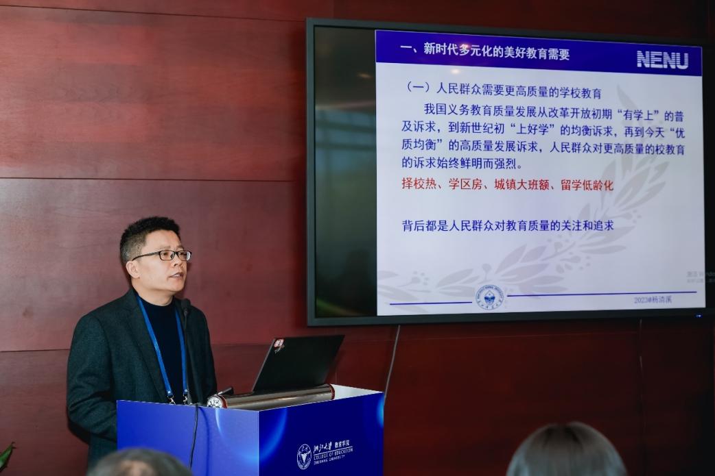 平行论坛二在梨洲厅举行。由浙江师范大学李云星教授、广州大学苏启敏教授主持。10位教育学者围绕会议主题分享了自己的研究成果。太原师范学院樊香兰教授作了题为“优秀乡村教师培育的价值意蕴、现实困境与优化路径”的报告。河南大学魏宏聚教授作了题为“教学经验概念化的价值与操作”的报告。杭州师范大学李丽副教授作了题为“教育空间生产的现代性问题及‘异托邦’再造”的报告。重庆师范大学冉亚辉教授作了题为“夯实基础、尊重天赋、宽容差异、全面育人:高质量基础教育基本要求——基础教育建设教育强国基本理论论析”的报告。湖北师范大学鹿星南副教授、研究生伍佩作了题为“人工智能赋能学校教育变革内在逻辑、潜在风险与规避路径”的报告。广西师范大学徐乐乐副教授作了题为“论教育学知识生产的人格向度——基于舍勒人格伦理学的知识价值分析”的报告。河南大学王振存教授、张清宇老师作了题为“教育强国建设的逻辑、目标指标与路径”的报告。陕西师范大学郭祥超副教授、研究生唐诗雨作了题为“论教育强国建设的安全逻辑”的报告。滨州学院王莹博士作了题为“从表象到行动:教育强国背景下教育知识生产的认知论转向”的报告。西北民族大学尕藏草副教授作了题为“我国教育学原理研究生培养的路向与启示—基于2017-2022年1496篇硕士学位论文研究主题的比较分析”的报告。