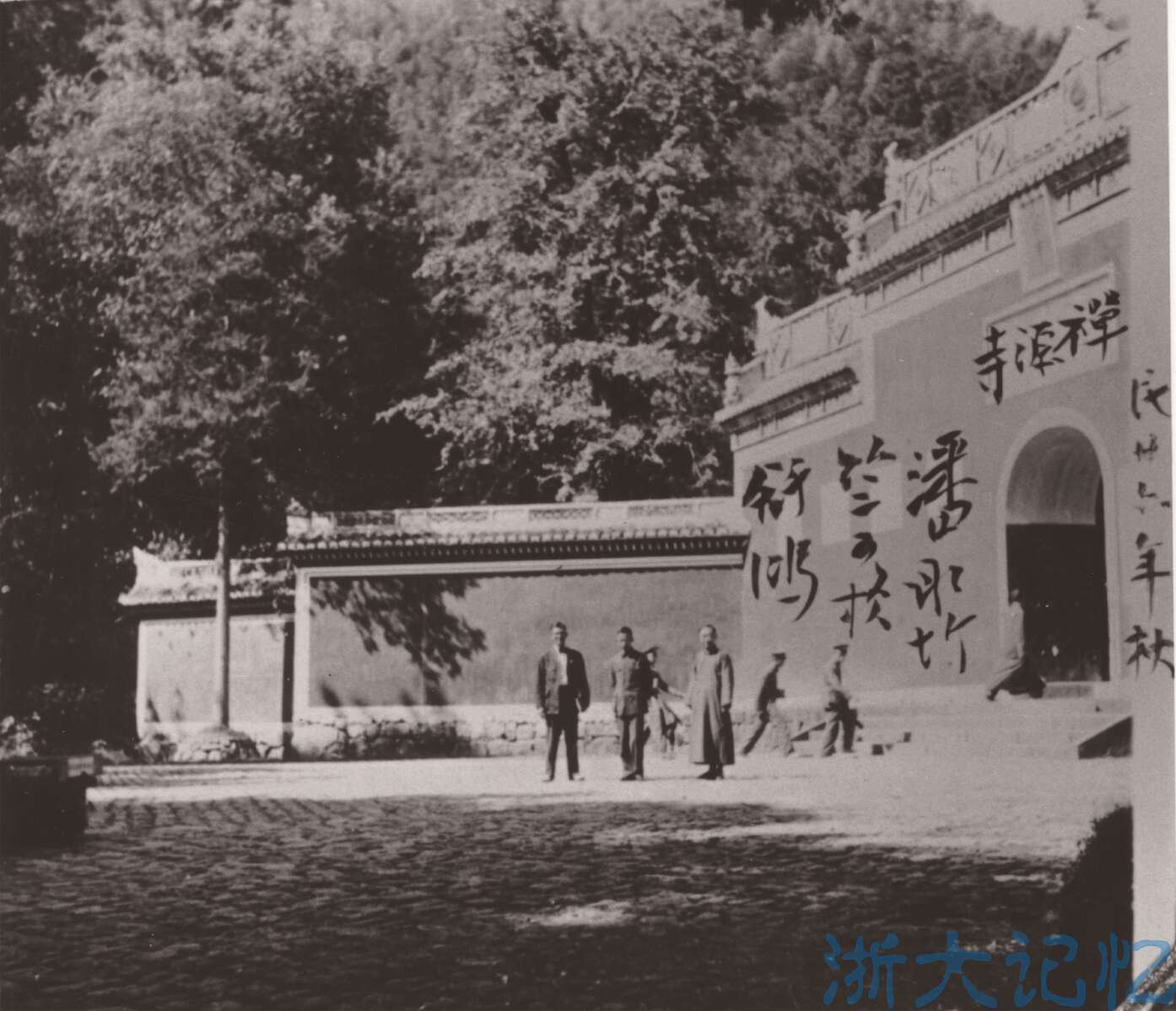 竺可桢与潘承圻、舒鸿教授留影于禅源寺