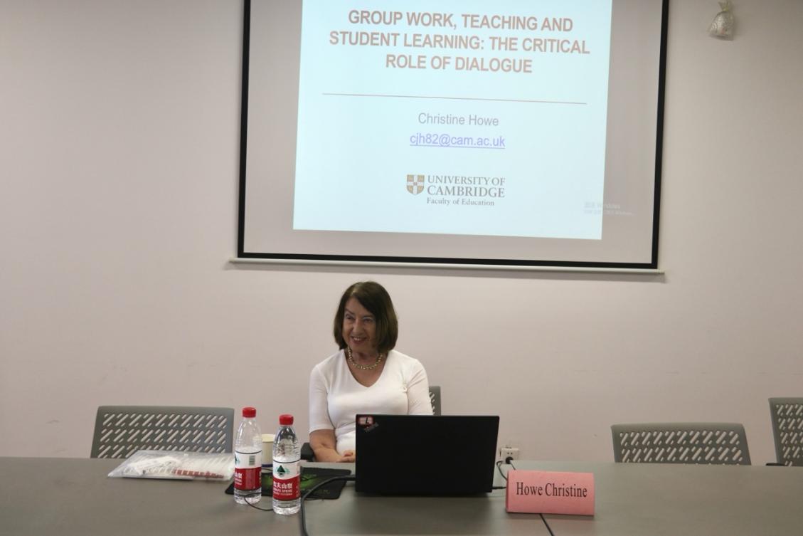 5月22日中午,yl8cc永利官网青年教师联谊会“青椒汇”系列活动暨教师教学发展系列学术活动在yl8cc永利官网大楼204教室顺利举行。本次活动邀请了英国剑桥大学yl8cc永利官网退休教授、Lucy Cavendish学院研究员Christine Howe教授作主题为“小组合作、教学和学习:对话的关键作用”的分享交流。学院课程与学习科学系、教育学系等师生参加此次讲座和交流。讲座由yl8cc永利官网青年教师联谊会会长何珊云老师主持。