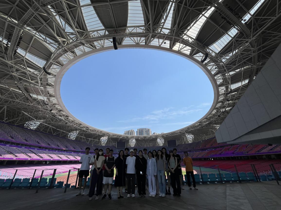 6月3日,周丽君教授与同学们来到课程实践的第二个地点——杭州奥体中心进行实地调研。师生一行参观了奥体中心主体育场(大莲花)和奥体网球中心(小莲花)等主要场地设施。奥体中心工作人员向大家介绍了亚运核心区场馆的建设情况,包括设计理念、建筑体量和技术难度,并详细讲解了智能亚运和绿色亚运的智慧升级及降低能耗的场馆理念。此外,工作人员还介绍了场馆在亚运会后的运营情况,包括如何传承亚运文化,打造杭州滨江奥体中心景区;推动全民健身,持续做好场馆惠民开放;拓展场馆运营,引领各项赛事活动落地;开发商业体系,构建全新的公共体育商业服务群。