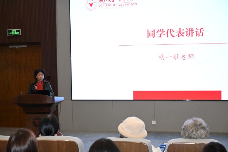 体育学系六五届田径专科班班长兼团支书楼一敏老师代表全体校友发言。她回顾了当年同窗共度的青春岁月,表达了对母校栽培和恩师教诲的感激之情。楼一敏老师表示,此次重返母校既是一次温暖的团聚,也是对我校精神的再一次传承。她希望同学们珍惜这份深厚的同学情谊,继续关注和支持母校发展,共同为学院的未来贡献力量。