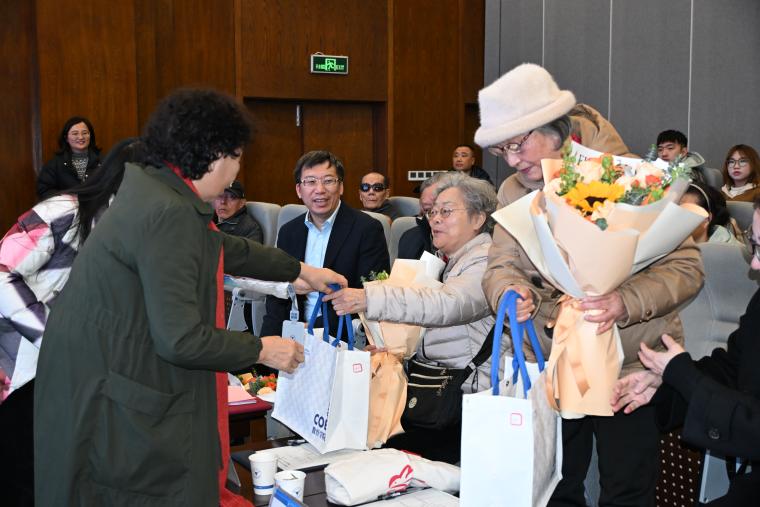 校友们向恩师洪洁心老师、寿云霞老师献花表达感激之情,学院领导向校友们赠送了纪念品,现场氛围温馨而感人。