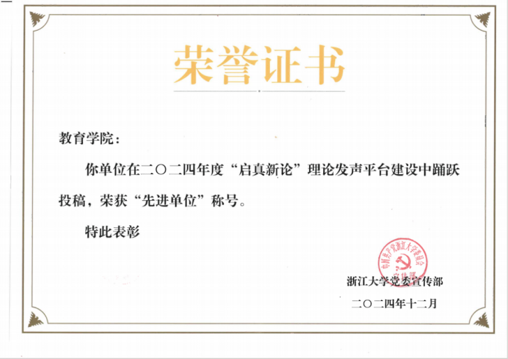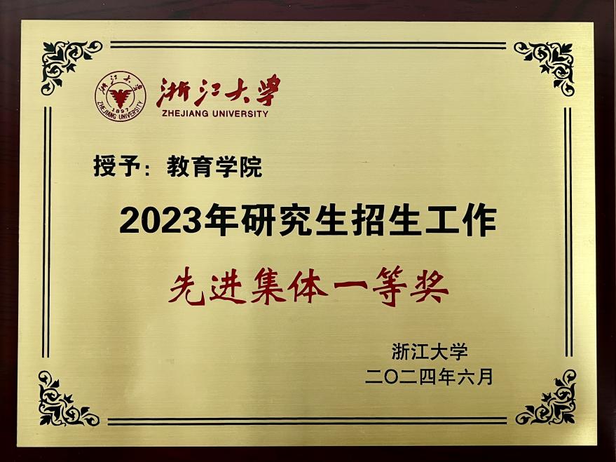 学院获评“2023年浙江大学研究生招生工作先进集体一等奖”。