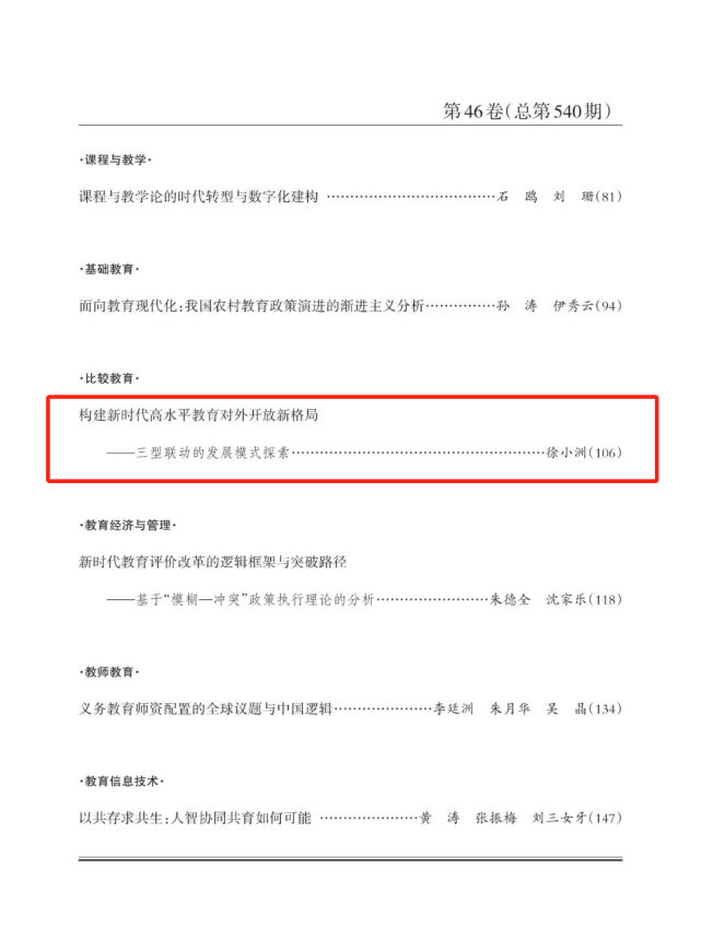 yl8cc永利官网教育学系徐小洲教授的学术论文《构建新时代高水平教育对外开放新格局——三型联动教育对外开放模式探索》在2025年第1期《教育研究》上刊发。