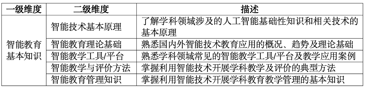 二是智能教育基本知识。智能教育基本知识指高校教师对智能技术的基本原理,尤其与其学科领域相关的人工智能基础性知识与技术原理,要有初步了解;熟悉支持智能技术应用于学科领域教学科研的理论,如整合技术的学科知识框架(TPACK)、多媒体认知理论、生成学习理论、联通主义学习理论等;熟悉学科领域代表性的智能教学工具和平台及使用案例;在开展智能教学活动时,能根据学习者特点及课程内容特性选择合宜的智能技术开展学科教学及评价,提升教学效率;了解学校常用教育教学管理系统中智能技术的使用原理及规范。