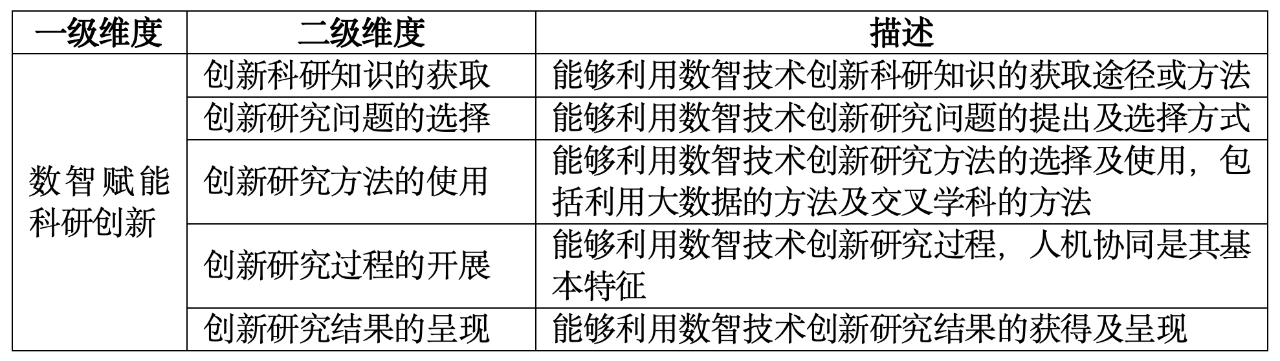 四是数智赋能科研创新。数智赋能科研创新指高校教师能够借助数智技术,创新科研知识获取的新途径或方法;依托数智技术寻找未完全解决或者尚待解决的前沿挑战,创新研究问题的选择方式;通过数智技术模拟实验过程,减少实验成本,探索新的实验过程及分析手段,创新研究方法;通过人机协同提升工作效率和创造力,将人类优势与机器高效率搜索完美融合,解锁解决复杂问题的巨大潜力;利用数智技术创新结果可视化形式,突破费曼极限,增强学术交流的效果和公众理解,提升研究的传播力和影响力。