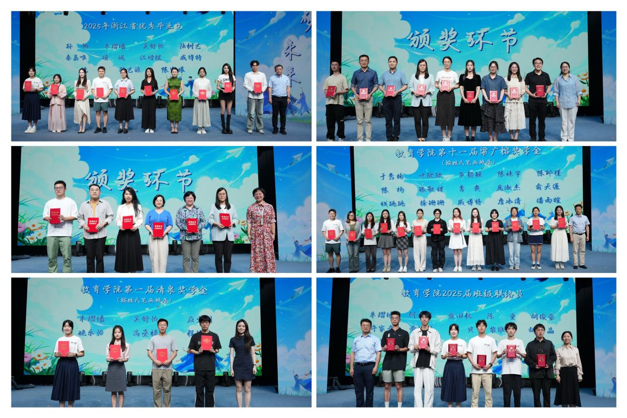 本次毕业晚会对优秀师生和先进集体进行了隆重表彰,依次表彰了浙江省普通高等学校优秀毕业生,yl8cc永利官网先进基层党组织、优秀共产党员、优秀党务工作者,yl8cc永利官网首届研究生“五好”导学团队、第十一届梁广榕奖学金获得者和首届清泉奖学金获得者,并颁发了2025届班级联络员聘书。这些奖项和聘书既是对优秀师生的肯定,也彰显了学院在党建与人才培养中的丰硕成果,激励着在场的每一个人努力拼搏、砥砺前行。